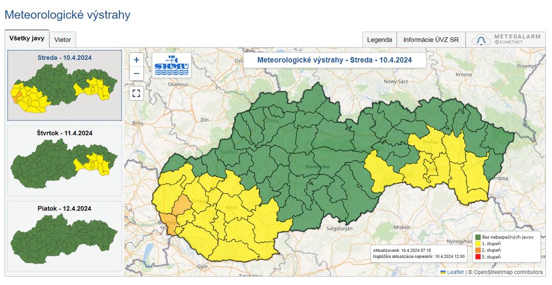 „Táto rýchlosť predstavuje potenciálne nebezpečenstvo pre ľudské aktivity. Predpokladaná rýchlosť vetra je v danej ročnej dobe a oblasti bežná, ale môže spôsobiť škody menšieho rozsahu,“ uviedol Slovenský hydrometeorologický ústav na svojej webovej stránke.