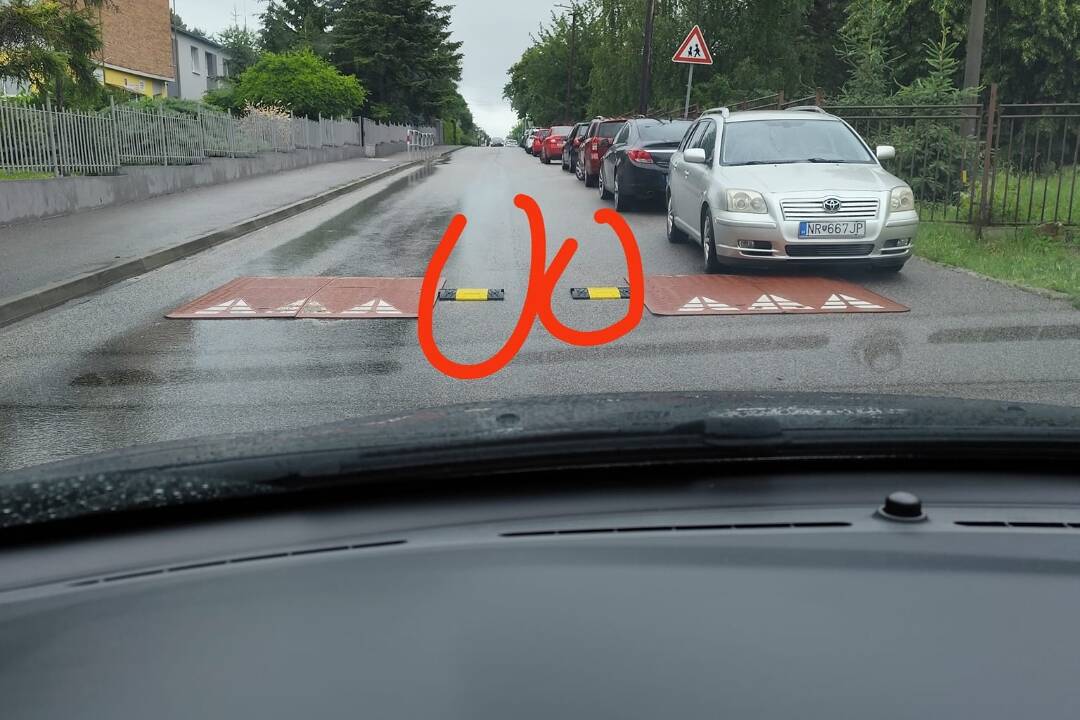 V skupine na sociálnej sieti venovanej dopravnej situácii v Nitre zverejnil jeden z členov fotografiu, ktorá zachytáva časť Červeňovej ulice v časti Čermáň. Jej autor sa čuduje zvláštnemu prevedeniu spomaľovacích prahov, ktoré sú umiestnené na ceste v blízkosti základnej školy.