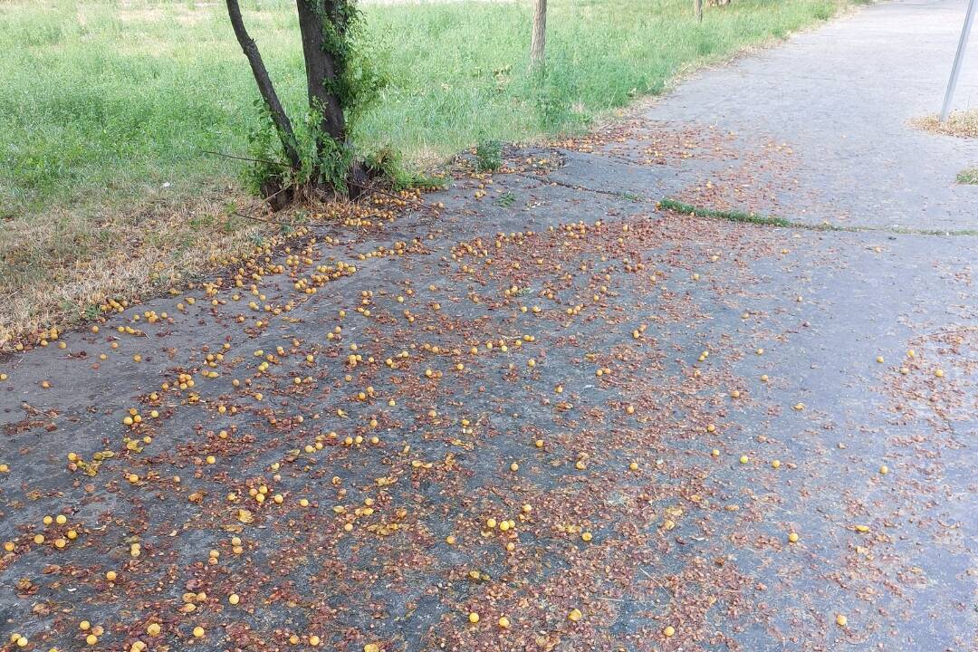 Nepriechodné chodníky a poškodené autá. Levičanov trápia padajúce slivky