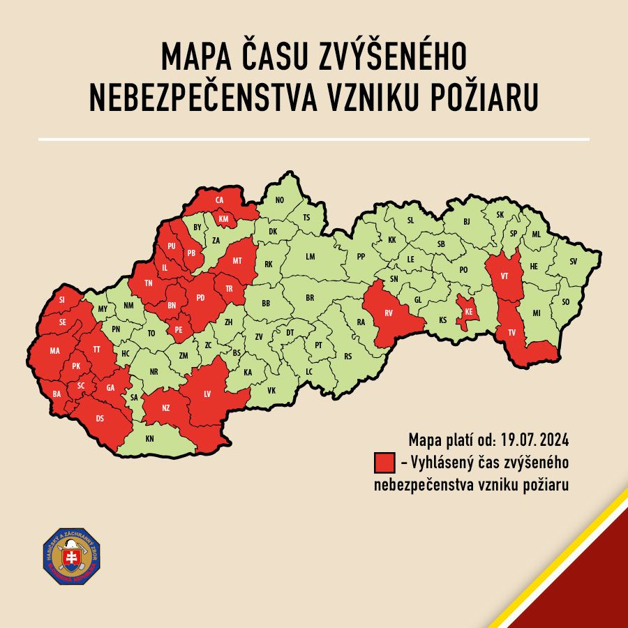 Okresné riaditeľstvo Hasičského a záchranného zboru v Leviciach vyhlásilo od stredy 17. júla od 13:00 hod. pre celé územie okresu čas zvýšeného nebezpečenstva vzniku požiaru. Ide tak po Nových Zámkoch už o druhý okres v rámci Nitrianskeho kraja, v ktorom platí táto výstraha. Dĺžka platnosti je až do odvolania.