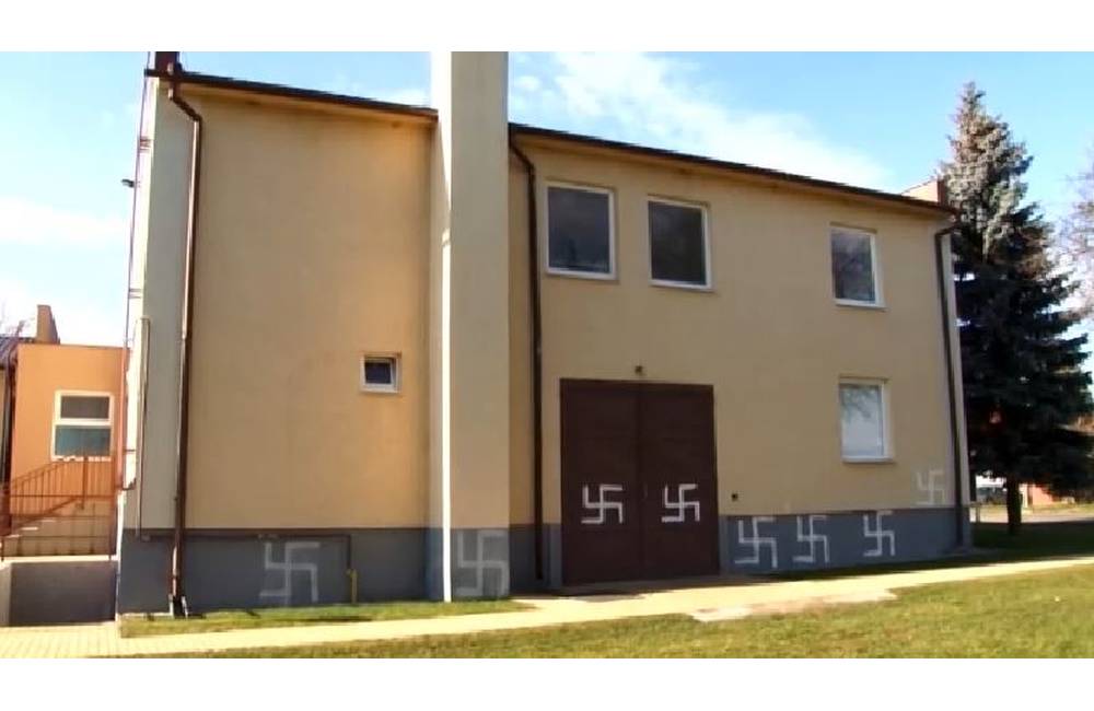 V dedine v okrese Nitra niekto pomaľoval obecný úrad hákovými krížmi