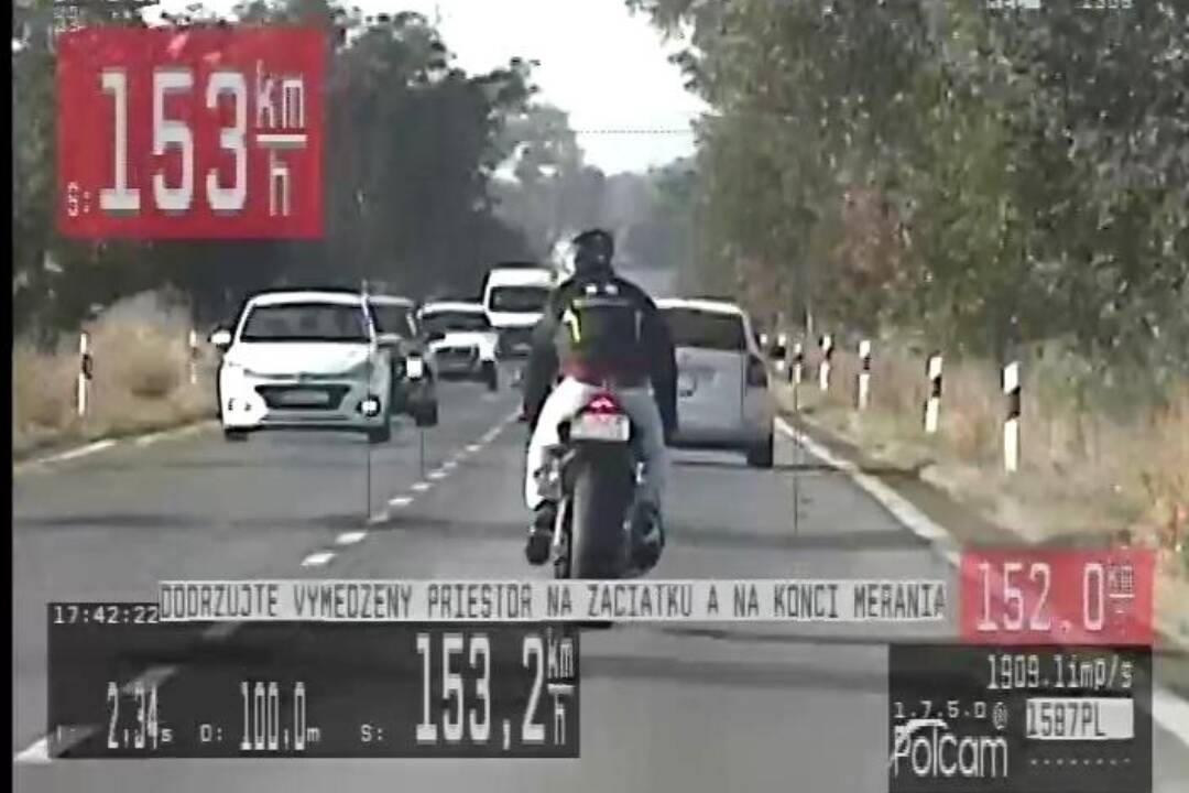 Dopravní policajti počas hliadkovania v novozámockom okrese narazili na motorkára, ktorý si z pravidiel premávky ani náhodou nerobil ťažkú hlavu. Radarom zmerali, že sa po úseku mimo obce premával rýchlosťou 153 kilometrov za hodinu.