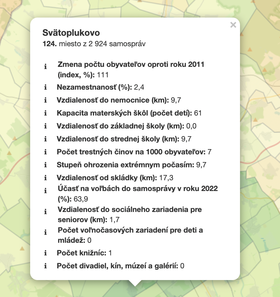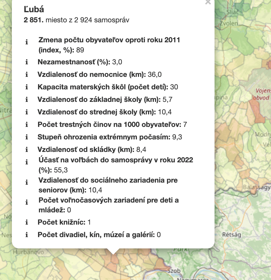 V hodnotení bolo zahrnutých viacero faktorov. Okrem iného zohľadnili vývoj počtu obyvateľov, nezamestnanosť, dostupnosť občianskej vybavenosti, ako sú škôlky, nemocnice či kultúrne inštitúcie, ale aj miera ohrozenia extrémnym počasím, vzdialenosť od skládky odpadu či počet zaznamenaných trestných činov. Kompletný zoznam aj s jednotlivými parametrami nájdete na webe kontrolného úradu.