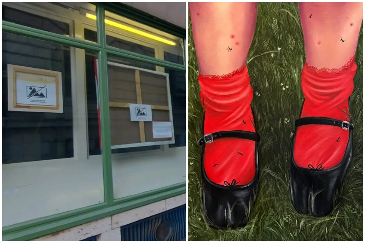 FOTO: Ľudí v centre Nitry zaskočila výstava vo výklade galérie, po kritike ju stiahli dovnútra