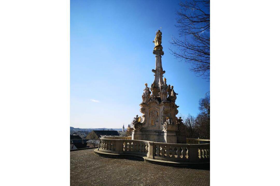 Cestou k Nitrianskemu hradu neminiete ani súsošie, ktoré vzniklo v roku 1750 ako pamiatka na veľké morové epidémie z rokov 1710 a 1739. Dielo sochára Martina Vogerlena zdobia sochy viacerých uhorských kráľov a svätcov, anjelov, reliéfy mariánskeho cyklu a kartuša s erbom biskupa Eszterházyho. Dominantou je pilier zakončený sochou Panny Márie Immaculaty.