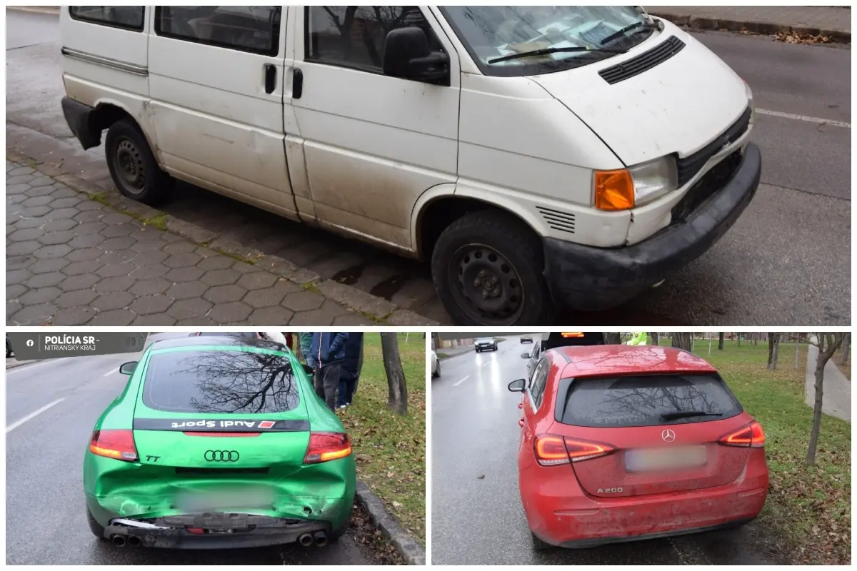 K dopravnej nehode na ceste II/563 v Nových Zámkoch boli privolaní policajti z miestneho obvodného oddelenia. Vodič Volkswagenu Transportér pravdepodobne nedodržal bezpečnú vzdialenosť a narazil do pred ním idúceho vozidla Audi TT, ktoré následne vrazilo do ďalšieho auta značky Mercedes. Pri kontrole 64-ročného šoféra Volkswagenu zistili, že má v sebe 1,71 promile alkoholu.