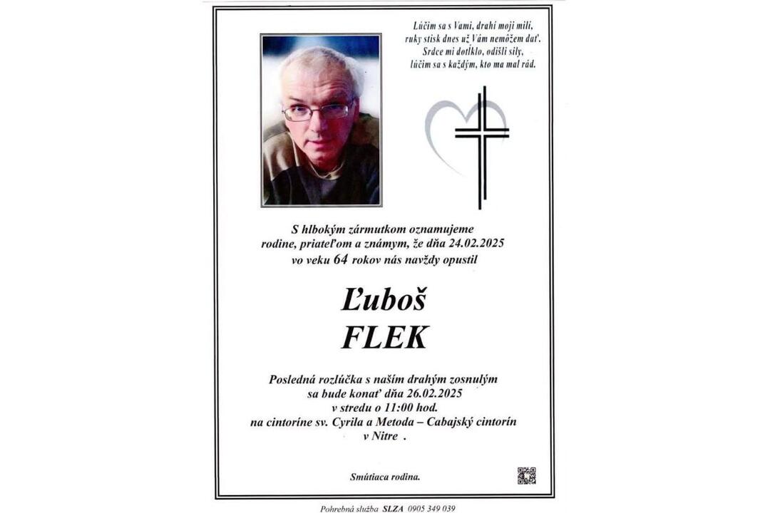 Nitrianska cyklistická komunita prišla v pondelok 24. februára o významného a obľúbeného člena. Vo veku 64 rokov zomrel Ľuboš Flek, dlhoročný člen a účastník cyklojázd Critical Mass Nitra, ako aj nadšený podporovateľ cyklistiky v meste pod Zoborom. O tejto smutnej správe informovala cyklistická iniciatíva na sociálnej sieti.