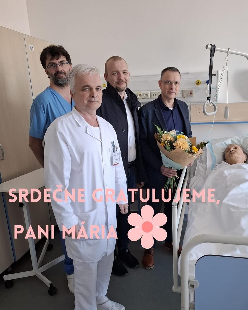 „Šťastie a zdravie prajeme našej milovanej pacientke, pani Márii, a ďakujeme jej za inšpiráciu a silu, ktorú nám všetkým rozdáva“ blahoželá nemocnica k výnimočnému jubileu pani Márie.