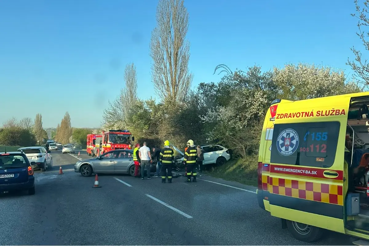 Na Zlatomoraveckej ceste I/65 za Kolíňanmi smerom do Nitry sa v piatok ráno zrazili dve osobné autá. Jedno z vozidiel následne skončilo mimo cesty. Úsek je ťažšie prejazdný, na mieste už zasahujú záchranné zložky. Rátajte s menším zdržaním.