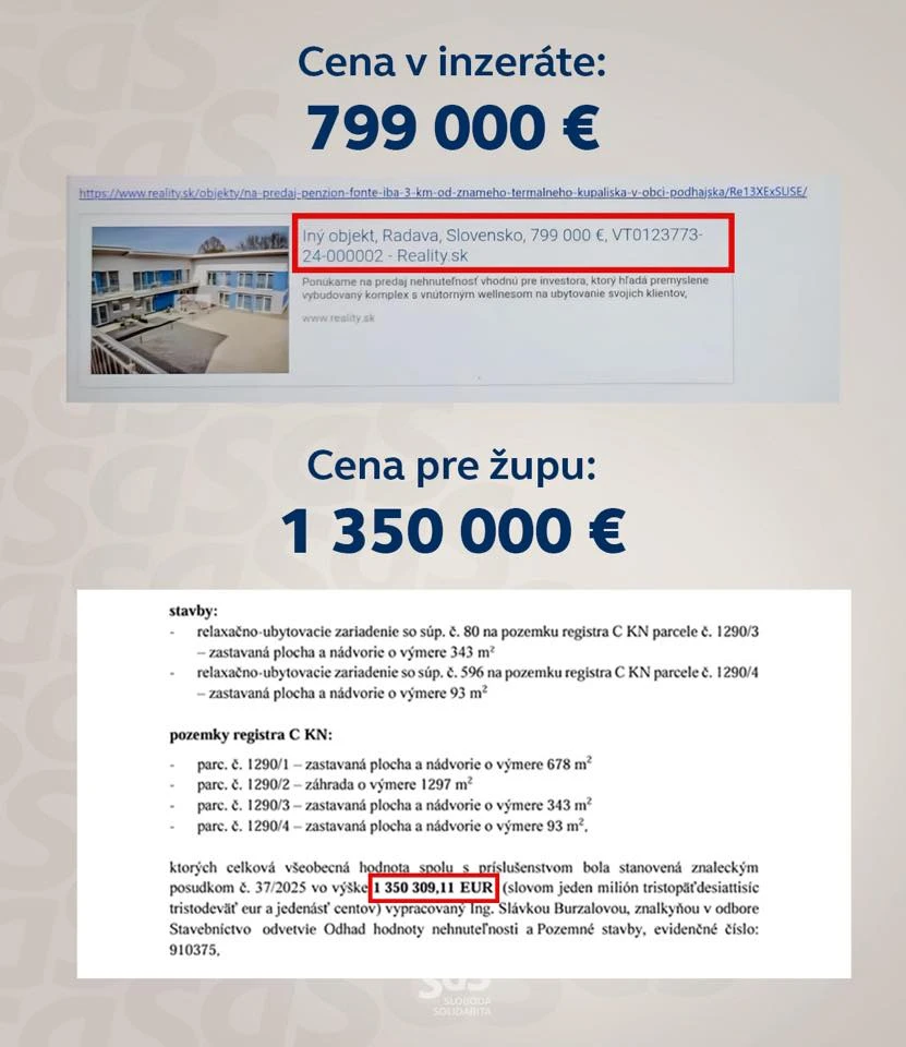 „Je to potvrdené, Becík klamal o zámene pozemkov nitrianskej župy za penzión, ktorý dostal dotáciu z PPA. A máme to čierne na bielom. Penzión, ktorý nitrianska župa získala výmenou za takmer 50 000 metrov štvorcových pozemkov bol minulý rok v novembri v ponuke za 799 000 eur. Teraz má podľa župy hodnotu 1 350 000 eur a vymenila ho za pozemky v hodnote 5 000 000 eur. Že vám to nevychádza? No to asi nikomu. Áno, ceny nehnuteľností idú hore, ale aby penzión v Radave narástol za 6 mesiacov na hodnote o 60% je úplná sprostosť a každému musí byť jasné, že ide o podvod,“ napísala na sociálnej sieti.