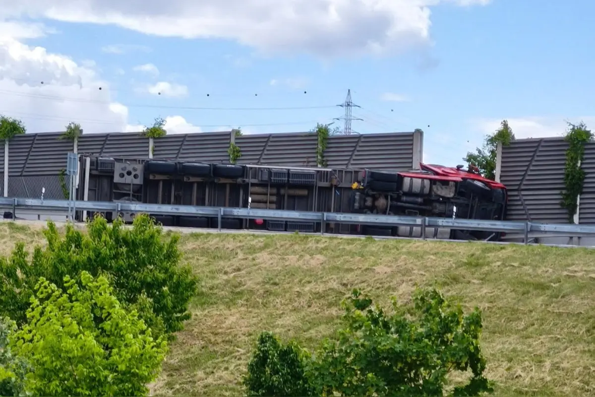 Výjazd z diaľnice R1 Nitra-Juh je neprejazdný, prevrátil sa tu kamión