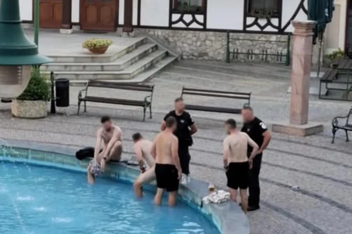 Štyria českí návštevníci Komárna sa počas horúčav rozhodli schladiť naozaj svojským spôsobom. Na Nádvorí Európy skončili vo fontáne, pričom jeden z nich ukázal viac, ako bolo potrebné. O bizarnej situácii informuje portál noviny.sk.