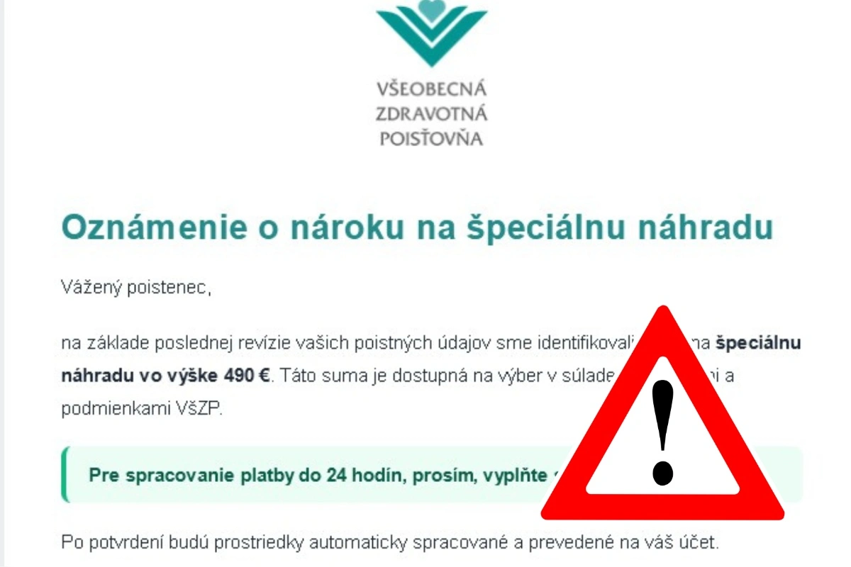 Na sociálnej sieti sa nedávno o jeden z takýchto prípadov podelil Trnavčan Dušan, ktorý dostal podozrivý e-mail údajne od Všeobecnej zdravotnej poisťovne (VŠZP). Správa mu ponúkala refundáciu vo výške 490 eur a obsahovala tlačidlo s výzvou na zobrazenie faktúry.