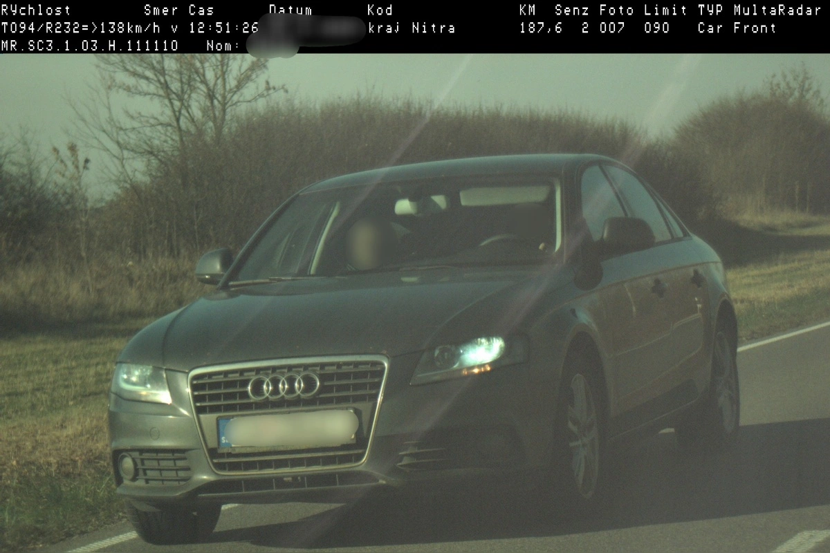 Počas merania rýchlosti na tejto ceste, kde je najvyššia povolená rýchlosť 90 km/h, namerali vodiča Audi, ktorý jazdil rýchlosťou 138 km/h. Povolený limit tak prekročil o 48 km/h.
