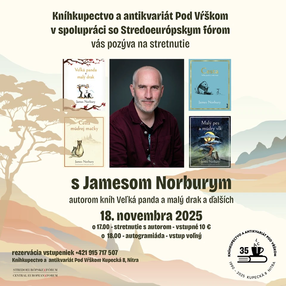 Fanúšikovia svetového bestselleru Veľká panda a malý drak majú dôvod na radosť. Do Nitry totiž prichádza jeho autor, James Norbury, ktorý sa osobne stretne so svojimi čitateľmi. Podujatie sa uskutoční v utorok 18. novembra 2025 v priestoroch kníhkupectva a antikvariátu Pod Vŕškom na Kupeckej 8.
