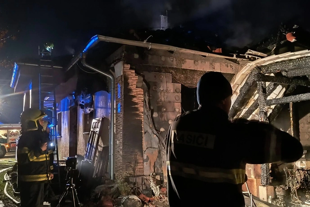 FOTO: Hasiči z Topoľčian a Nitry v noci zasahovali pri požiari domu v Bojnej, oheň zachvátil altánok aj strechu