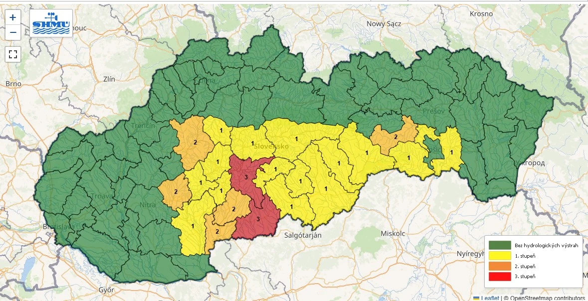 „Ďalšie vodné toky dosahujú tiež 2. SPA ako Turiec, Štiavnička, Krupinica, Hnilec, Stará rieka a Štítnik, a taktiež viaceré 1. SPA. Podľa SHMÚ sa očakáva na tokoch ďalší výrazný vzostup vodných hladín. V povodí hornej Nitry, Žitavy, Hrona, Ipľa, Slanej, Bodvy je možné taktiež prekročenie stupňov povodňovej aktivity,“ avizuje portál imeteo.sk.