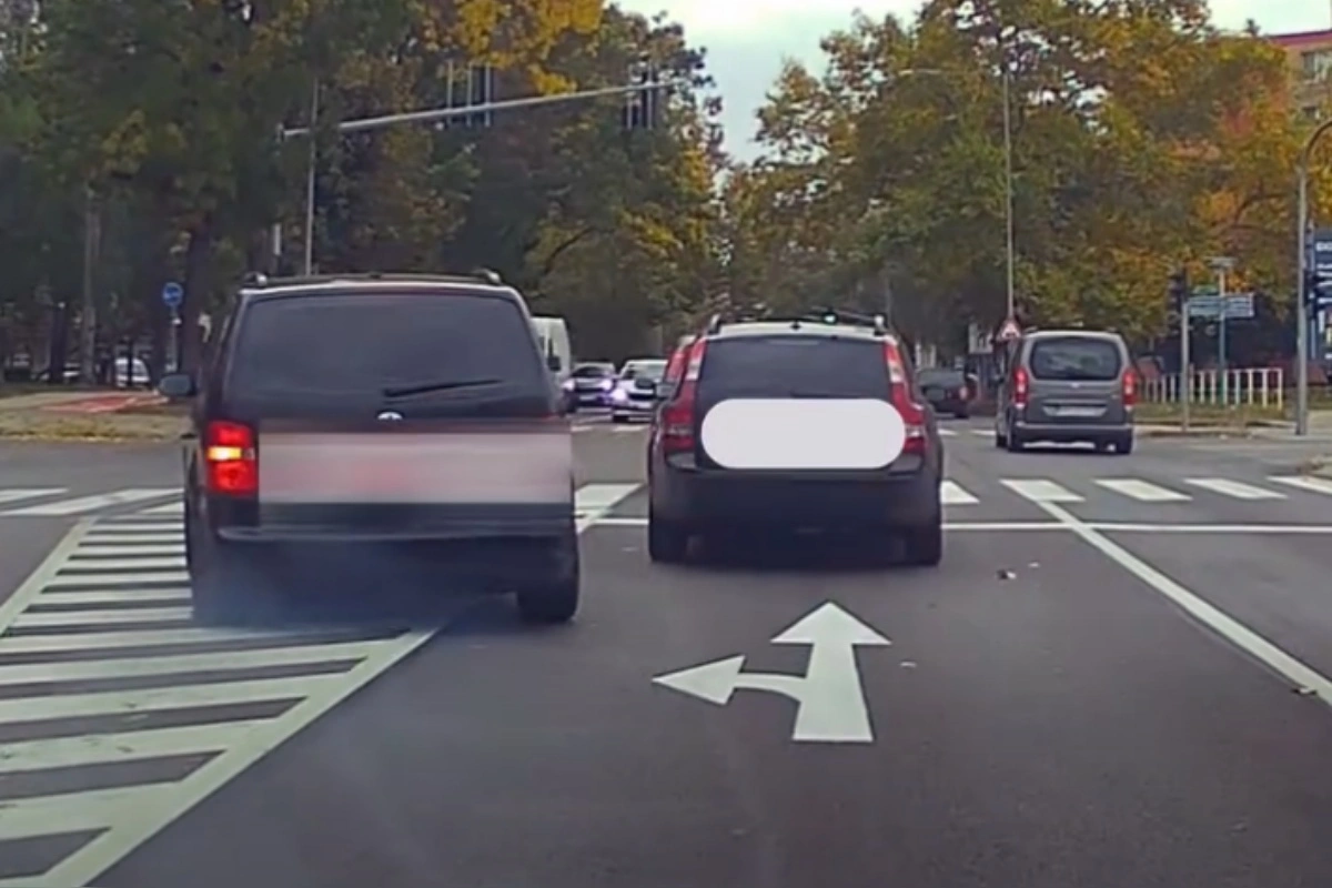 Vodič nezrýchlil náhodne a neurobil „kratšiu chybičku“. Obehol iné autá v križovatke, z ľavého pruhu, počas odbočovania, čo je presne typ situácie, v ktorej dochádza k smrtiacim nárazom z boku. Polícia celú situáciu zadokumentovala na kameru a vodič mal smolu. Neuvedomil si, že nebezpečnú jazdu vykonáva priamo pred služobným vozidlom.