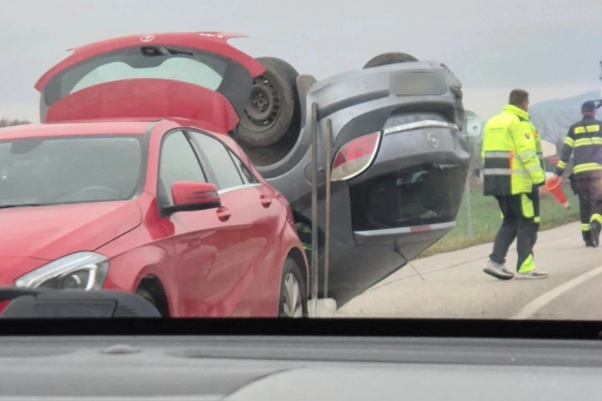 Medzi Chrabranmi a Nitrianskou Stredou skončilo auto na streche, prejazdný je len jeden pruh