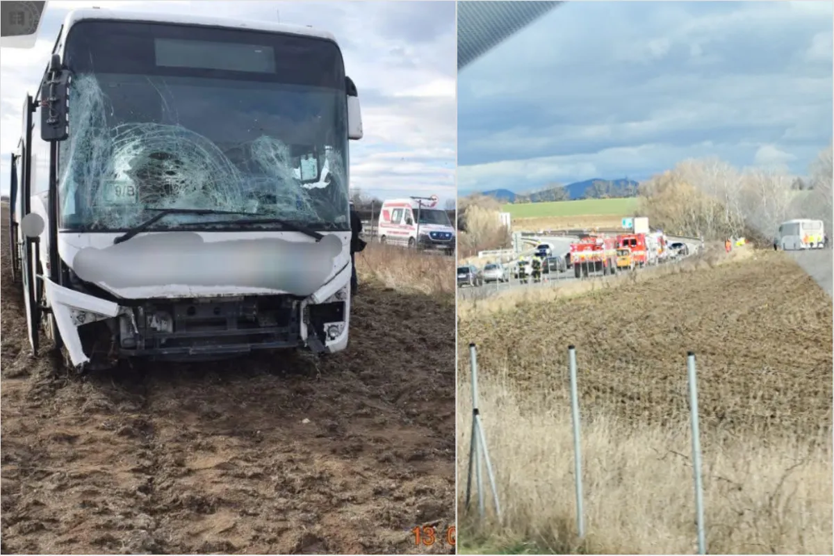VIDEO: Piatok trinásteho priniesol nehodu aj na R1 v smere do Nitry, pri havárii autobusu sa zranil vodič aj cestujúci