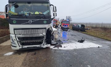 V Želiezovciach sa zrazila dodávka s kamiónom a dve osoby skončili v nemocnici. Cestu uzavreli