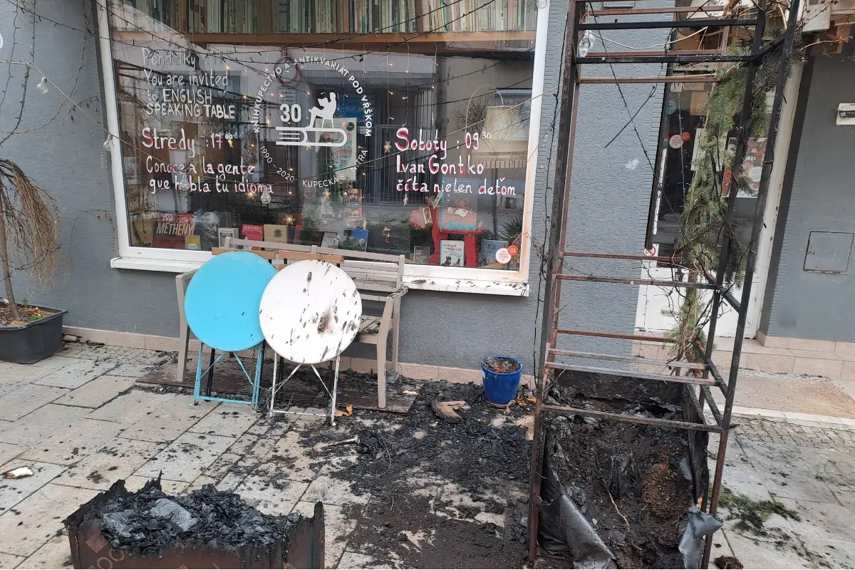 Požiar zničil terasu obľúbeného kníhkupectva v Nitre. Majitelia o ničom netušili, ráno tu našli už len popol